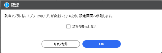 [OK]を押します。[次から表示しない]にチェックを入れると、このダイアログは今後表示されなくなります。