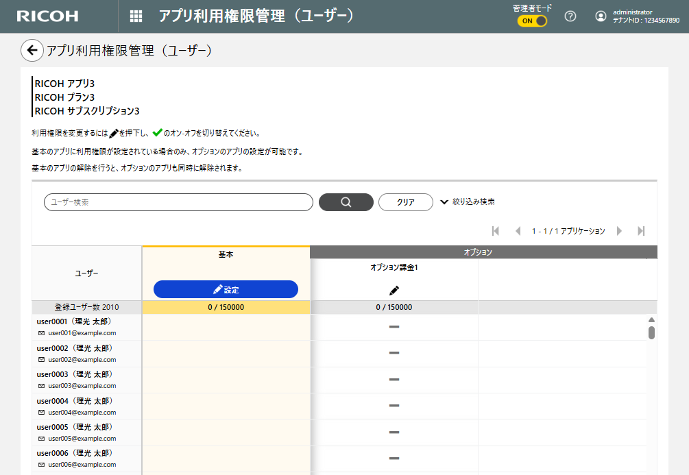 ユーザーにオプションアプリおよびそれを含む基本アプリの利用権限を設定する